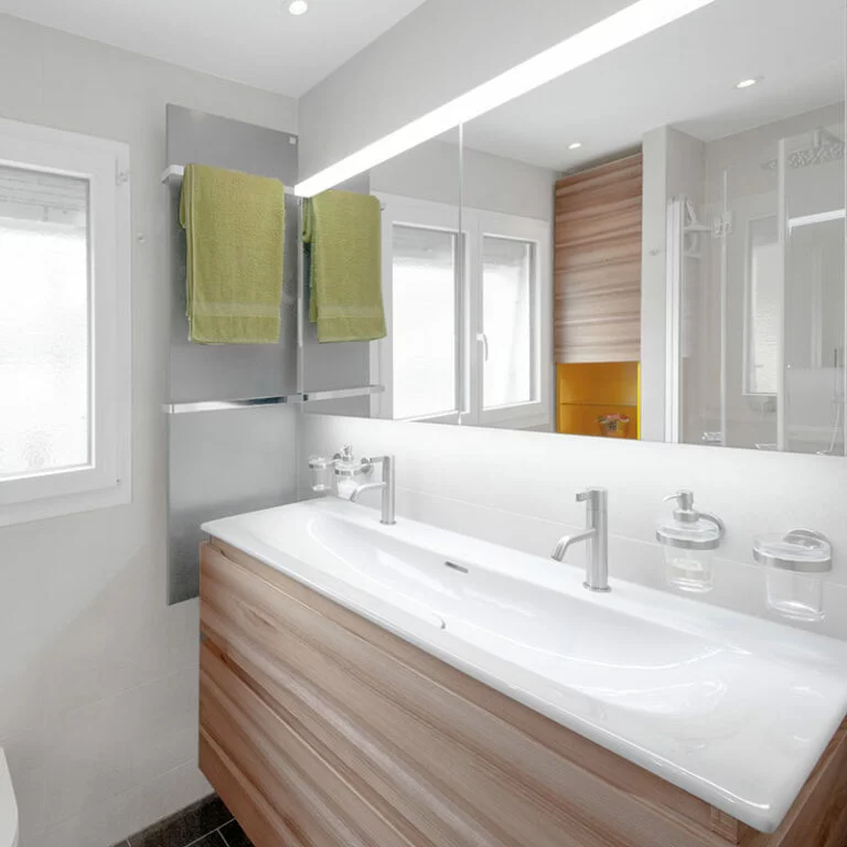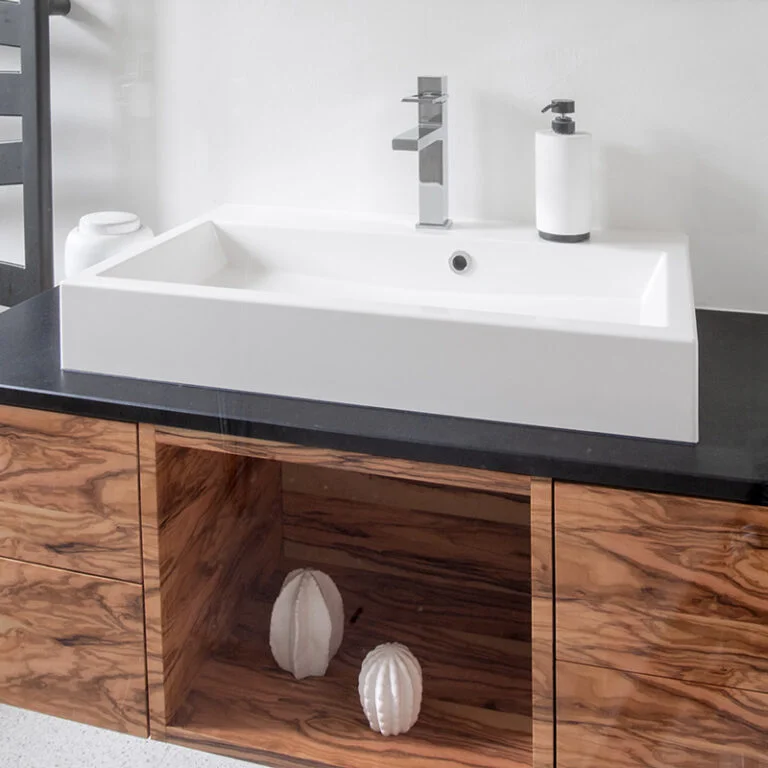 Wir gestalten hochwertige Badezimmermöbel nach Mass – von stilvollen Waschtischen über elegante Spiegelschränke bis hin zu praktischen Hängemodulen. Unsere Lösungen vereinen durchdachtes Design mit funktionalem Nutzen und passen sich Ihren Bedürfnissen optimal an.